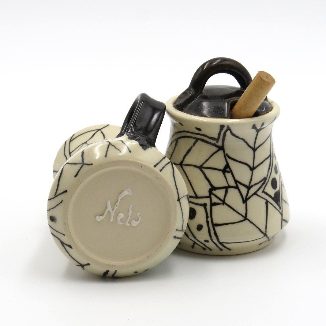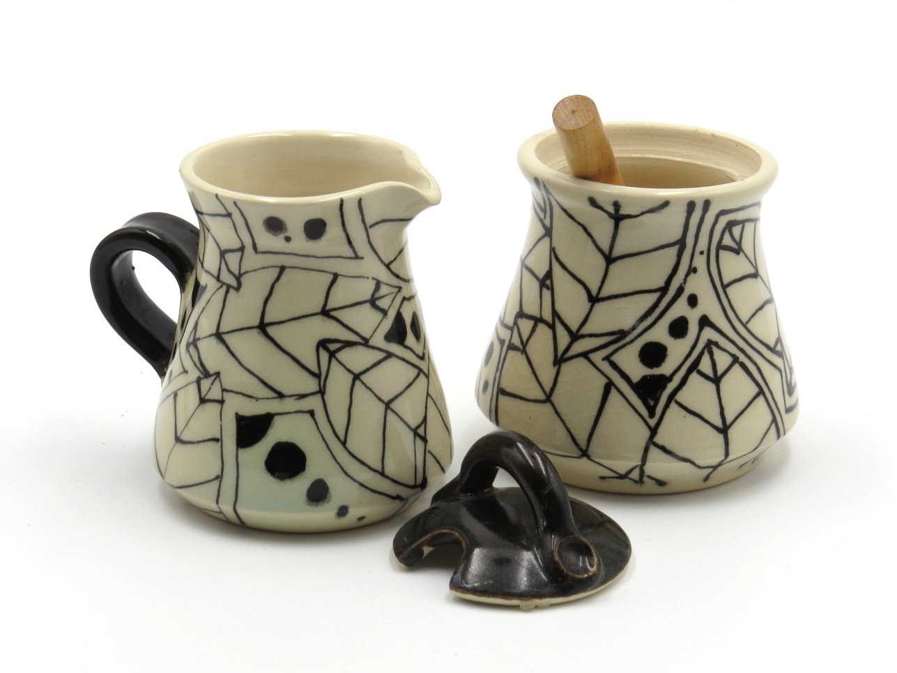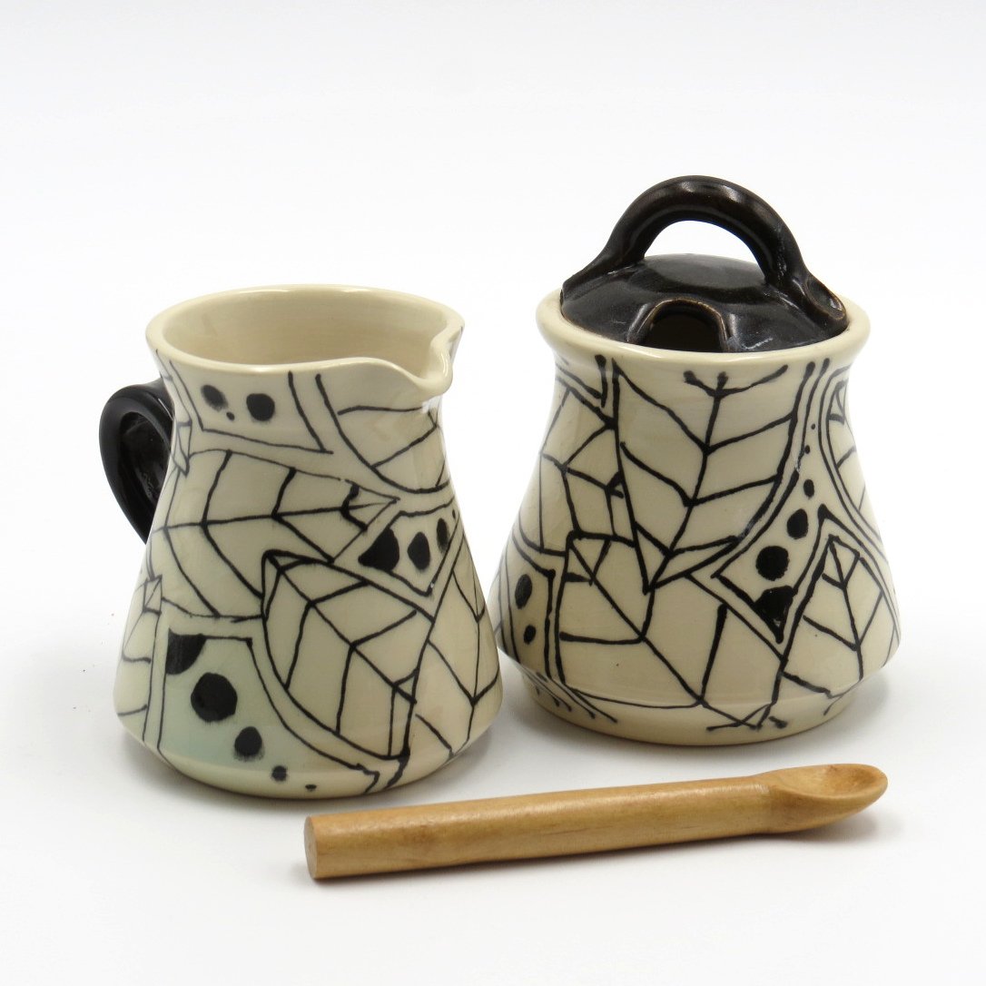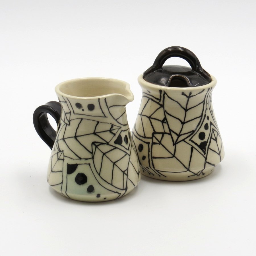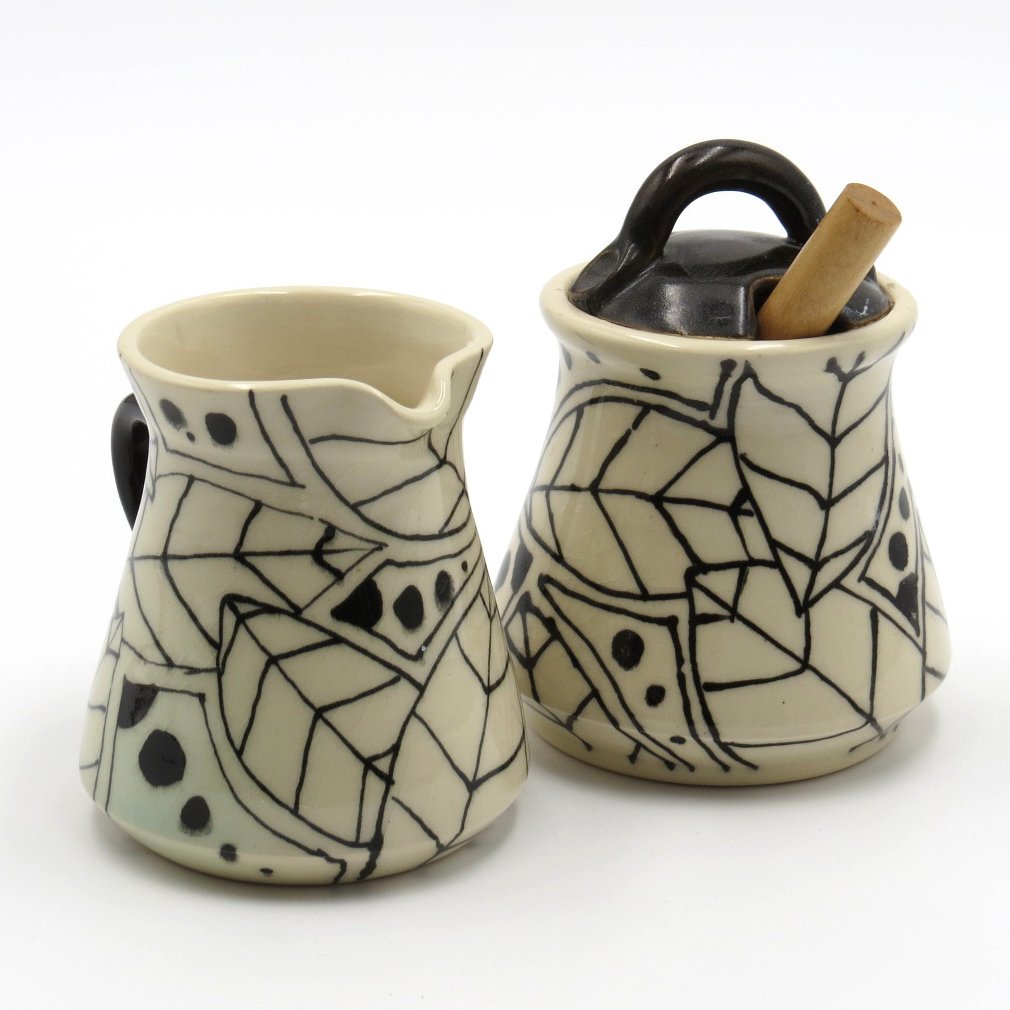 Sugar and Creamer set in black and white