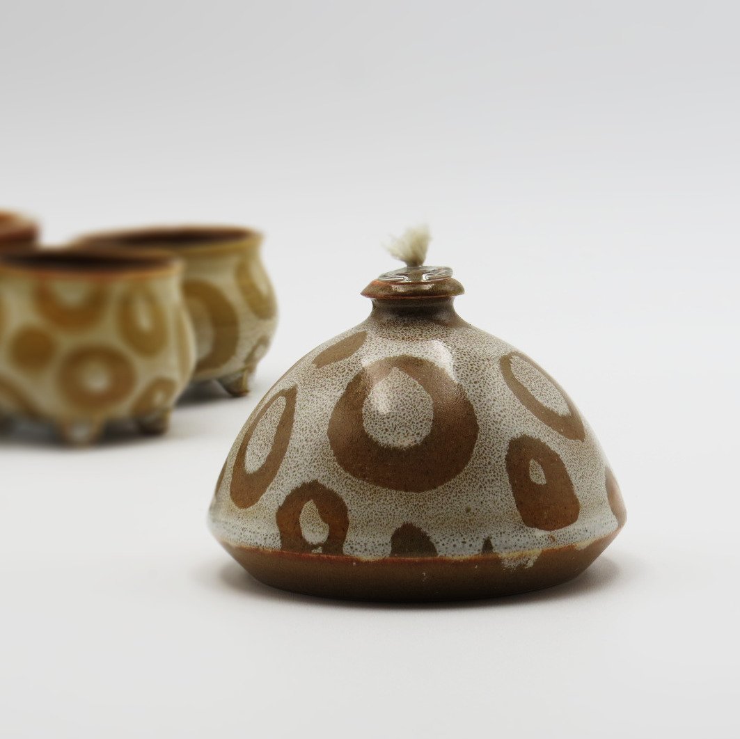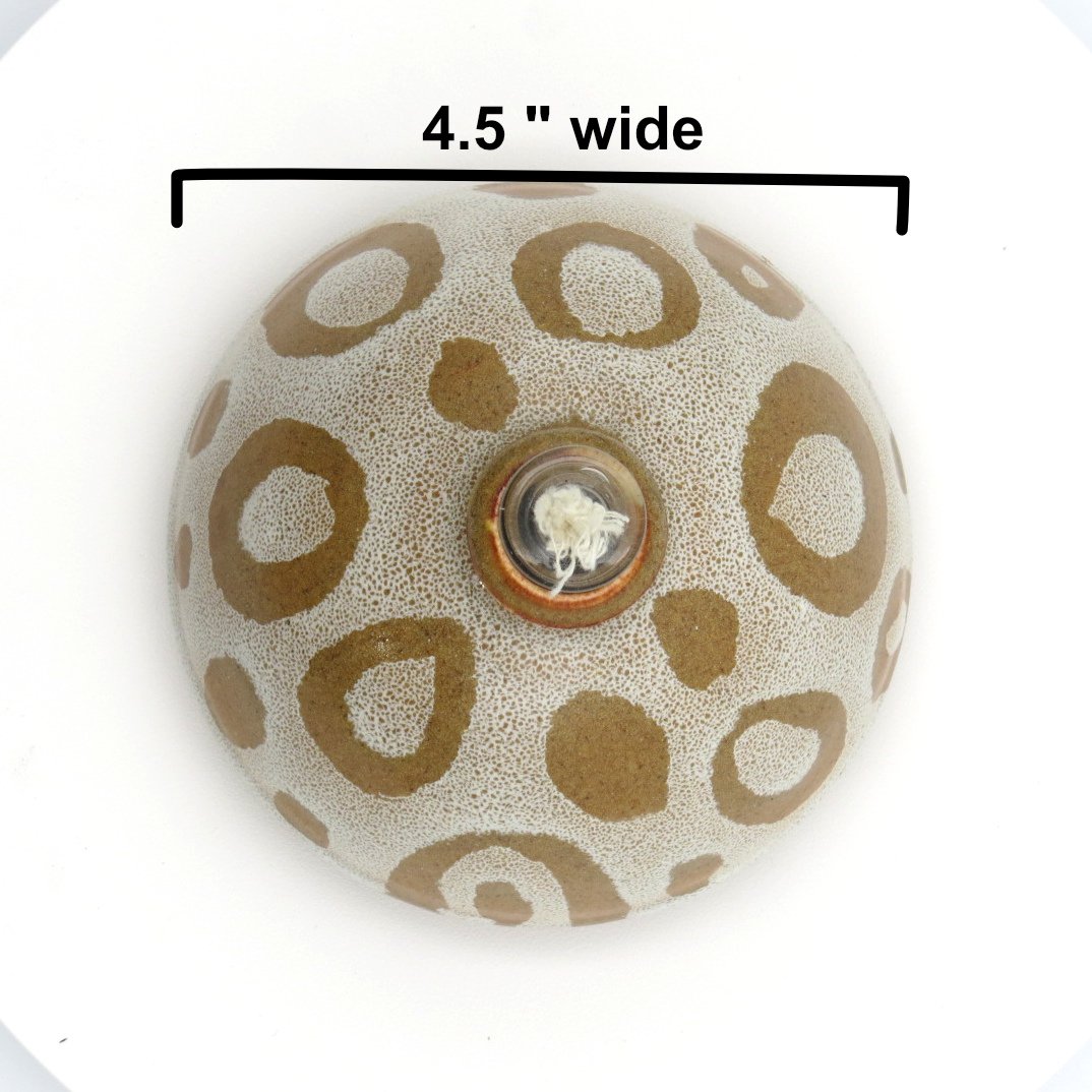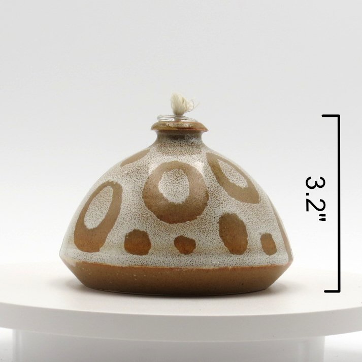 This handmade ceramic oil lamp features a warm, earthy design with a modern organic pattern, making it both functional and decorative