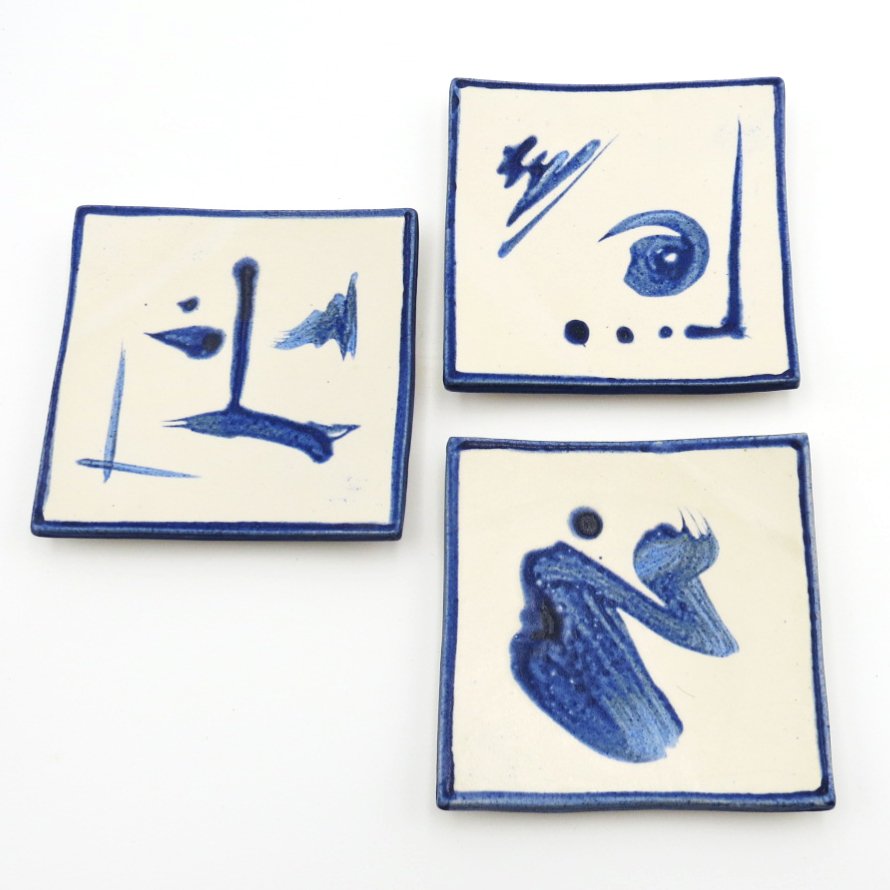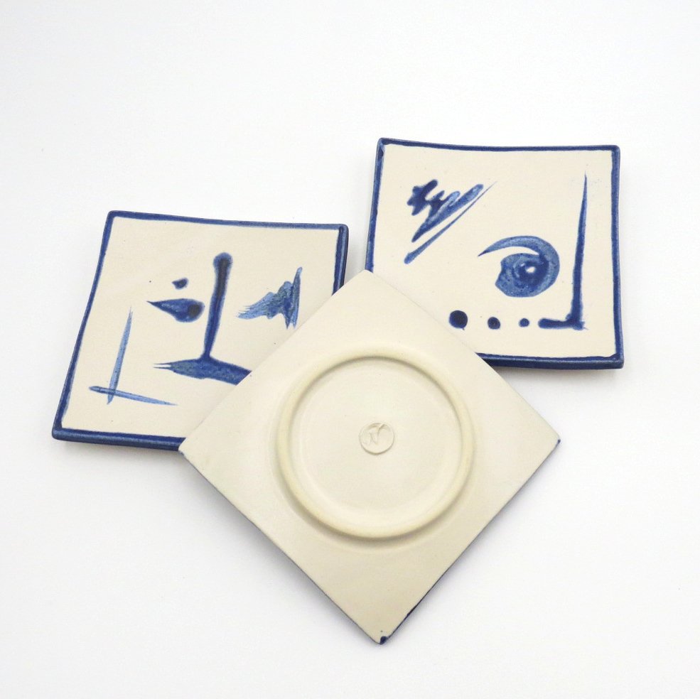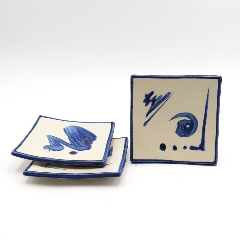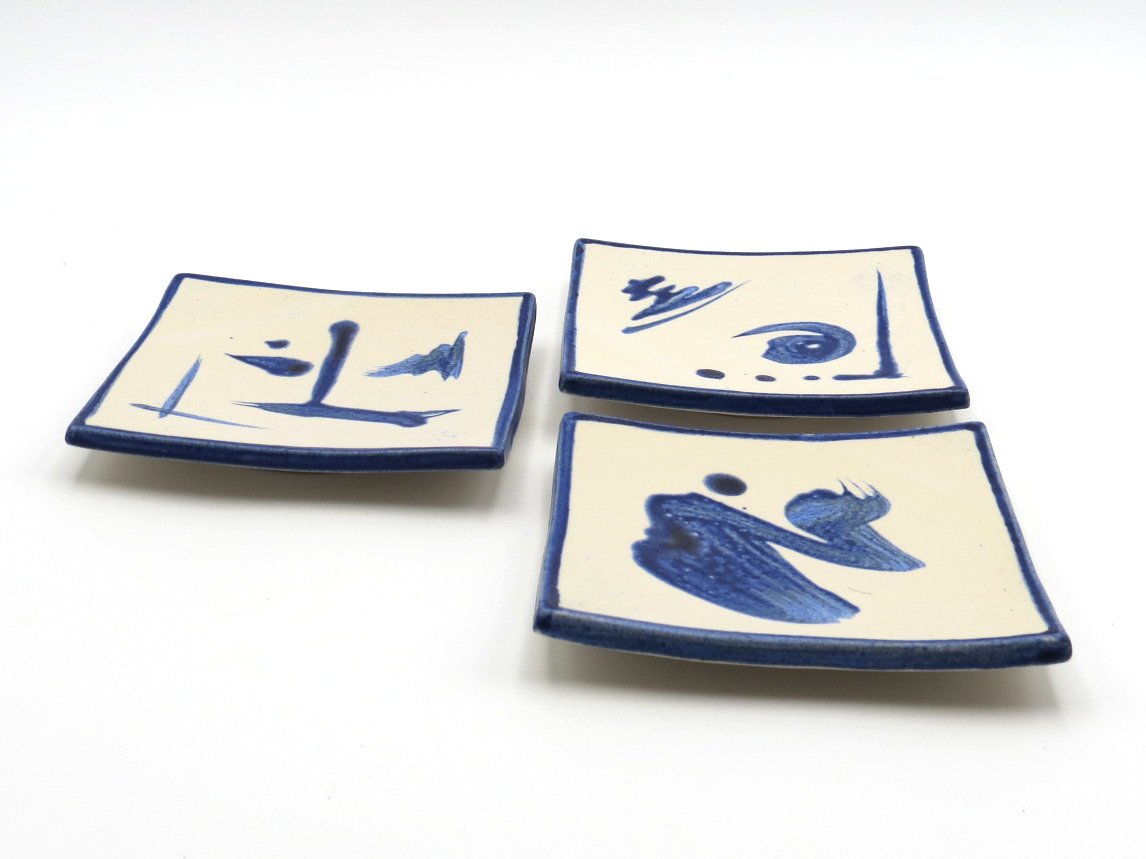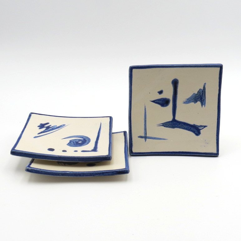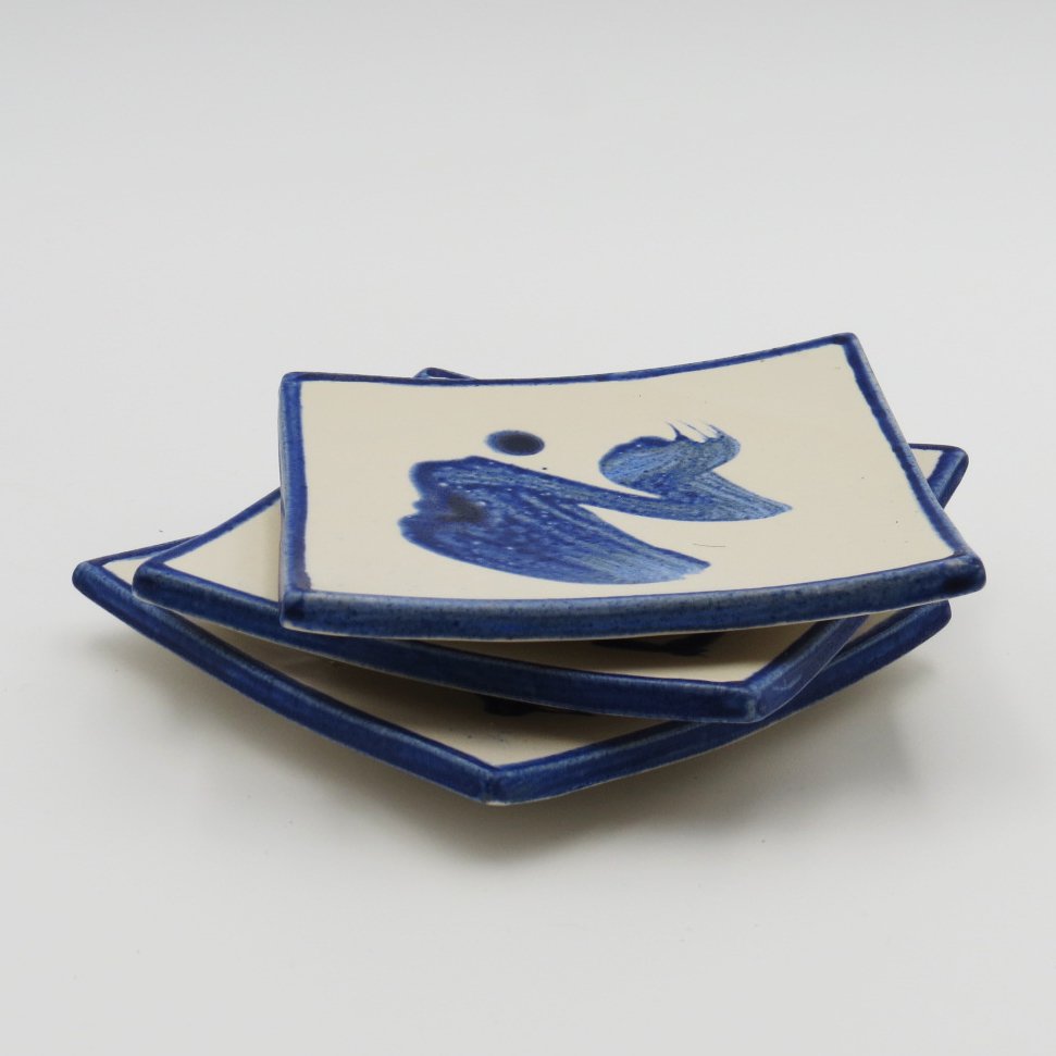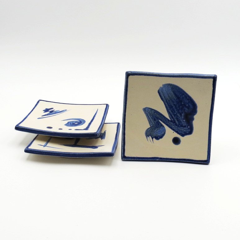 Inspired by Zen traditions, these handcrafted square dishes feature fluid blue brushstrokes on a soft white glaze, creating a sense of balance and simplicity. Their gently curved form and minimalist design make them a versatile accent—perfect for serving small bites or enhancing any space with a calm, artistic touch.